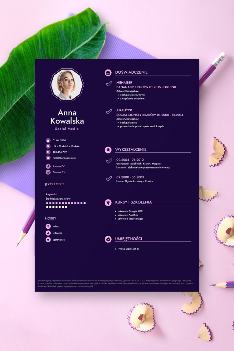 Darmowe wzory można dowolnie modyfikować, dopisywać nowe miejsca pracy, zmieniać zainteresowania i eksportować do najpopularniejszych formatów plików takich jak:.PDF . JPG .PNG