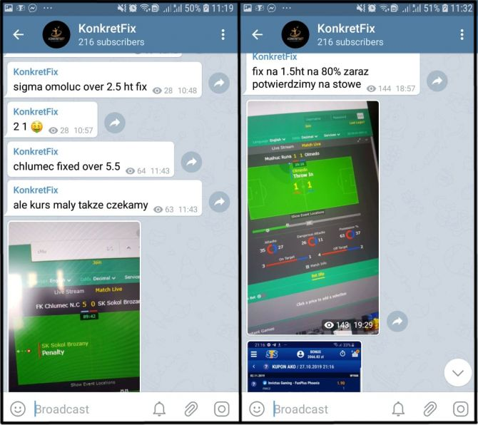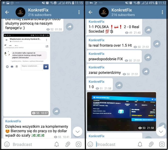 Witajcie! Na samym wstępie, prosilibyśmy o przeczytanie całej naszej wizytówki, ponieważ chcielibyśmy przedstawić Tobie pewien projekt, który tworzony jest przez grupę znajomych. W dwa miesiące, stworzyliśmy coś z niczego. Mieliśmy pewien pomysł, który chcieliśmy zrealizować tylko dla nas, lecz postanowiliśmy się nim podzielić. Chcielibyśmy podkreślić na wstępie, że jesteśmy osobami, które od ponad czterech lat żyją z obstawiania meczy. Wcześniej, robiliśmy arbitraż. Niestety, stało się to na tyle powszechne, że nie było już na tym zarobku i szukaliśmy nowego rozwiązania! Przypadkiem, obstawiając value bety, zauważyliśmy podejrzane ruchy na stronach bukmacherskich. Stwierdziliśmy, że są to ustawione mecze i graliśmy je małymi kwotami. Już po trzech pierwszych meczach stwierdziliśmy, że nasze szpiegowanie, nie poszło na marne i teraz możemy obstawiać większe kwoty, oraz dzielić się informacjami z większym gronem osób! Bardzo Tobie dziękujemy, że jesteś! Żeby potwierdzić część naszych typów, które wklejamy, poniżej umieszczamy parę screenshot'ów z naszego telegrama, a po więcej dowodów zajrzyj do nas pod linkiem: https://t.me/joinchat/AAAAAEOYBLaUFGBLRP2F-Q