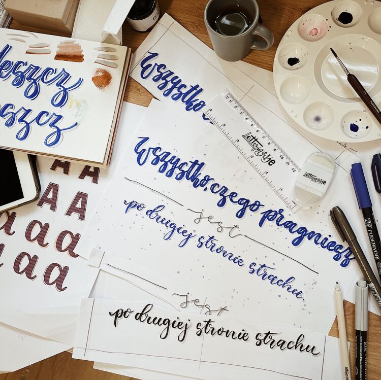 Tworzę od… zawsze, ale w Internecie działam od 2016 roku, prowadząc profil Letteringuje na Instagramie – na tym koncie dzielę się z Wami zarówno moimi pracami, jak i letteringowymi tutorialami, ćwiczeniami kaligrafii nowoczesnej, informacjami o swoich produktach i warsztatach. Hashtag #letteringuje zaprowadzi Cię zarówno do prac moich, jak i moich warsztatowiczów, kursantów i klientów, którzy naprawdę mają się czym chwalić – bo tworzą z moją pomocą fantastyczne rzeczy!
