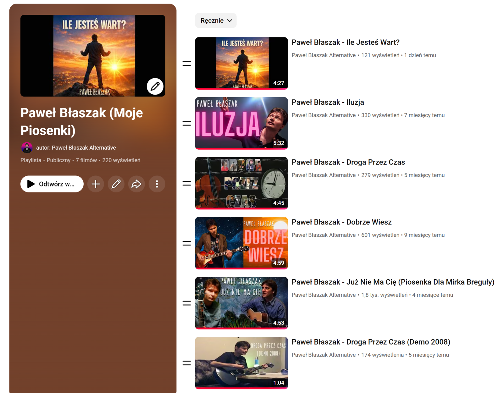 https://www.youtube.com/@PawelBlaszakAlternative/videos (Tu znajdziesz moje piosenki)