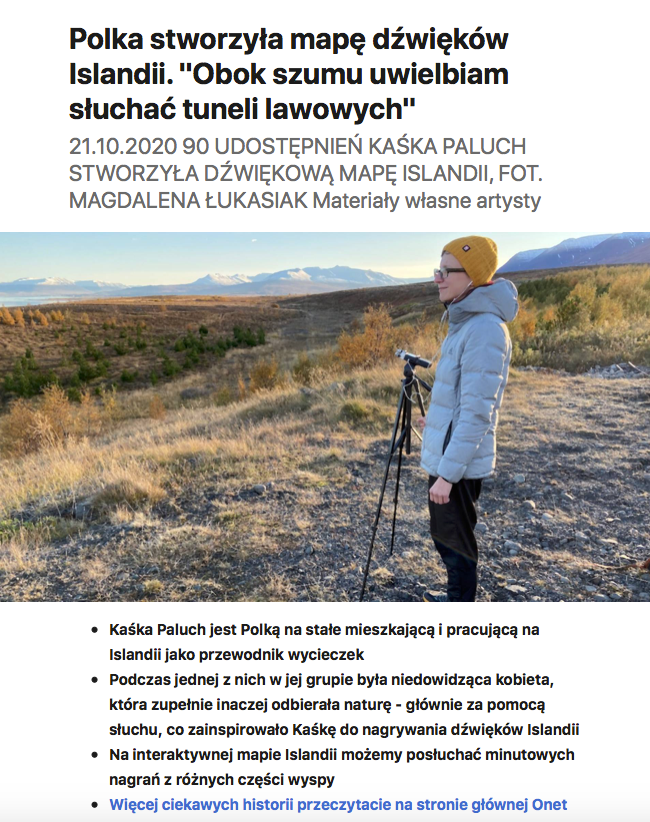 z wieloma innymi mediami zajmującymi się kulturą i turystyką. Pracuję nad tworzeniem pierwszej dźwiękowej mapy Islandii.