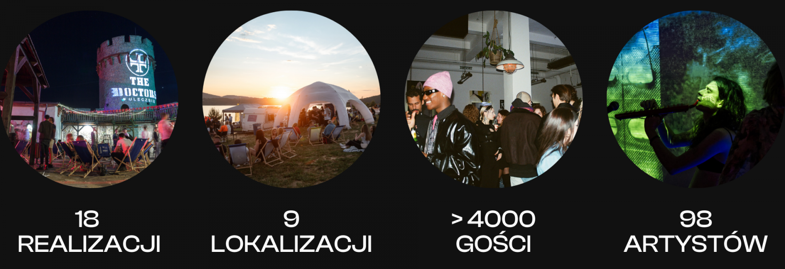 Nasze wydarzenia tzw. Zabiegi mają multidyscyplinarną formułę, łącząc ze sobą kilka form jednej nocy jak np. Koncert, Wernisaż, Pokaz Mody i Dj Set Afterparty.