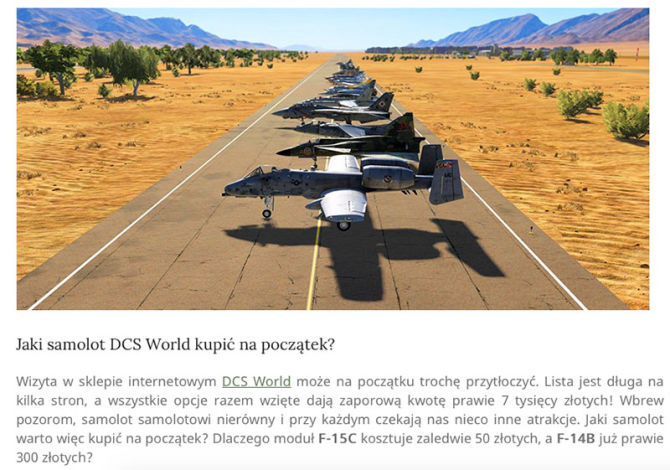Oprócz tego staram się także błyskawicznie informować o wszystkim, co dzieje się wokół DCS World, o nowościach, poprawkach, ciekawych modyfikacjach czy nadchodzących premierach - również nieoficjalnych dodatków. DCS to jeden z najciekawszych produktów na rynku dla każdego fana lotnictwa, ale próg wejścia jest dosyć wysoki, dlatego staram się, by moje poradniki były napisane w jak najbardziej przystępny sposób, z czytelnym podziałem na poszczególne tematy.