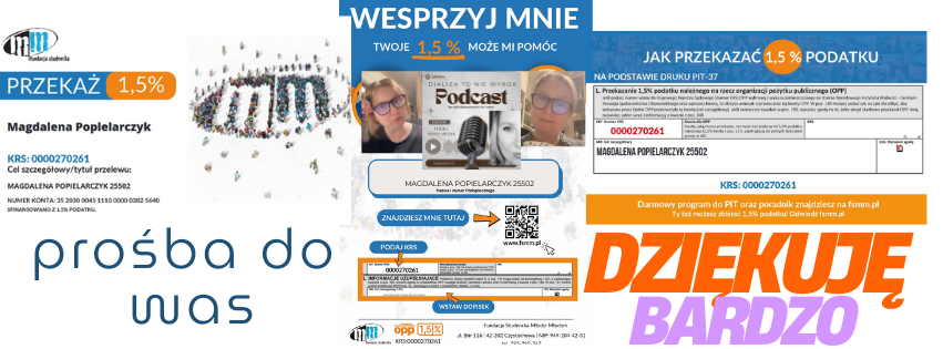 Hej zbieram też 1,5 % podatku jeśli masz ochotę pomóc w ten sposób :