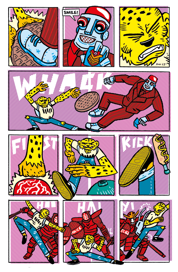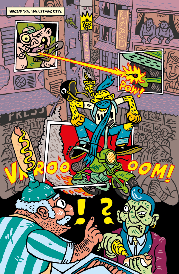 Druga i trzecia strona. Gryzdoły, wstępny szkic, ołówek, finalna wersja. Mniej więcej w tamtym czasie zorientowałem się, że komiks rozrywkowy bez rozkładówek jest wybrakowany.