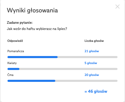 Jeśli głosowaliście na coś innego, nie martwcie się, wzór nie przepadnie! Wykonamy go w kolejnych miesiącach :)