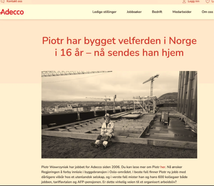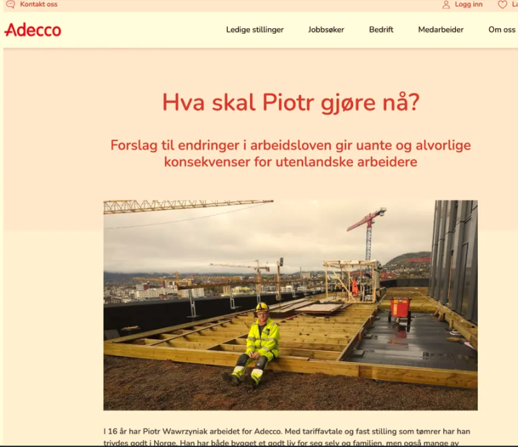 Adecco zrobiło swoją akcję mając na celu (delikatne mówiąc) przestraszyć pracowników, opinię publiczną i polityków przed wprowadzeniem ewentualnego zakazu. W artykule, który napisało Adecco (obecnie nie mogę go znaleźć - prawdopodobnie został skasowany, bo akcja się nie udała. Zostały tylko powyższe zrzuty.) można było się dowiedzieć, że Piotr pracuje w Adecco 16 lat i w najlepszym przypadku zostanie zatrudniony na gorszych warunkach przez zagraniczną firmę (ciekawe, dlaczego nie przez norweską) lub w najgorszym przypadku on, jak i jego 600 kolegów stracą pracę, układ zbiorowy i AFP.