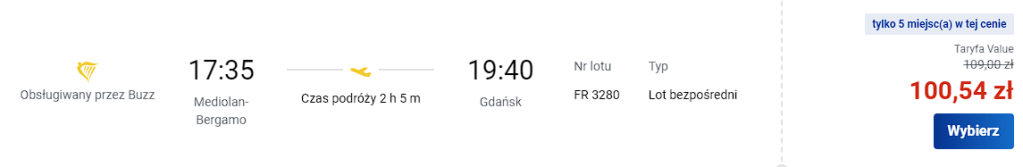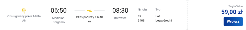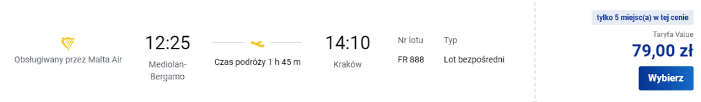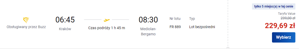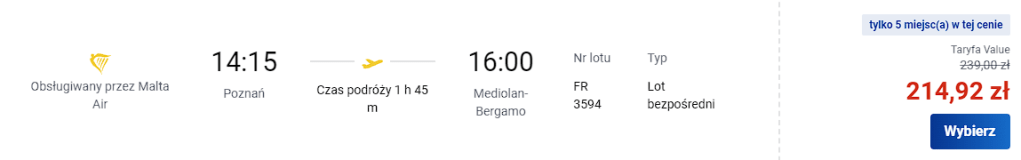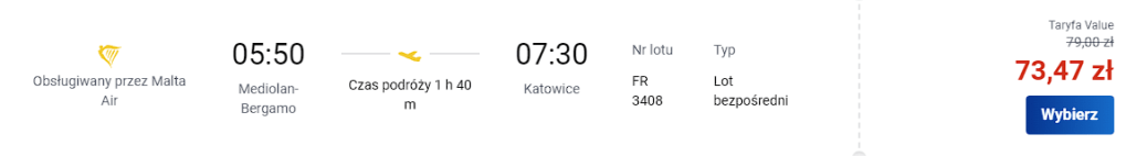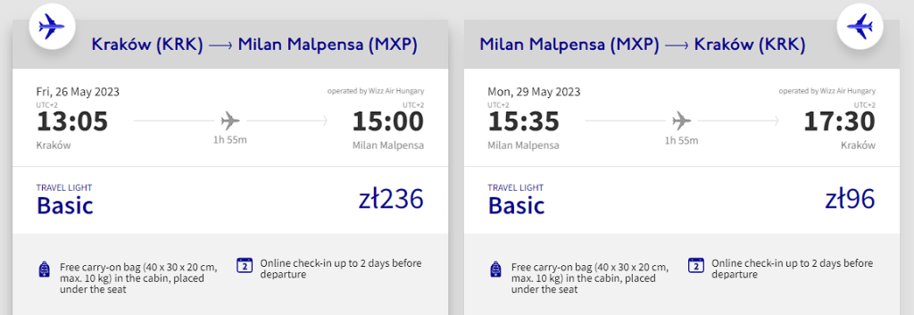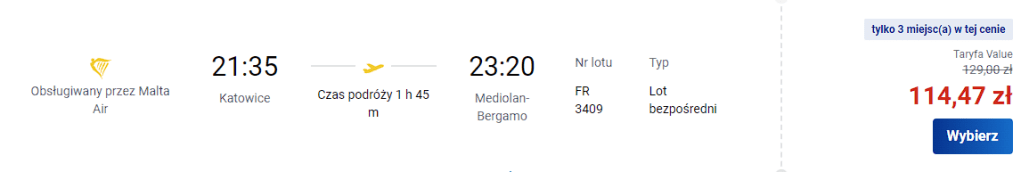 Ceny za lot dotyczą jednej osoby z bagażem podręcznym.