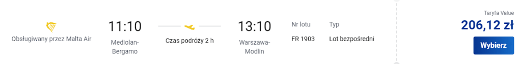 Warszawa Modlin-Mediolan