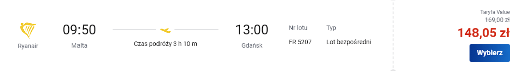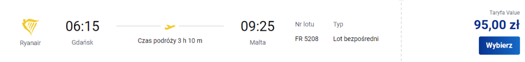 Przelot na trasie Gdańsk- Malta od @ryanair. W cene 243 zł/os. wliczono bagaż podręczny.