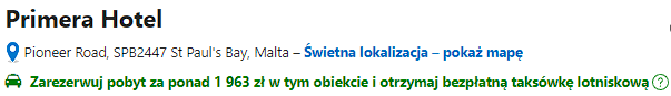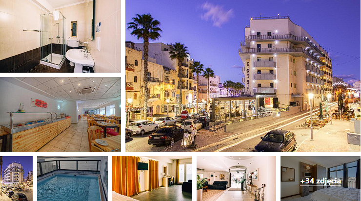 Hotel w centrum St. Paul’s Bay ( 30 min. od lotniska). Za pokój dwuosobowy z prywatną łazienką i balkonem zapłacisz 1443 zł. Jeżeli wybierzecie się z większą ekipą na wypoczynek i zatrzymacie się w tym hotelu , to otrzymacie transfer lotniskowy gratis!