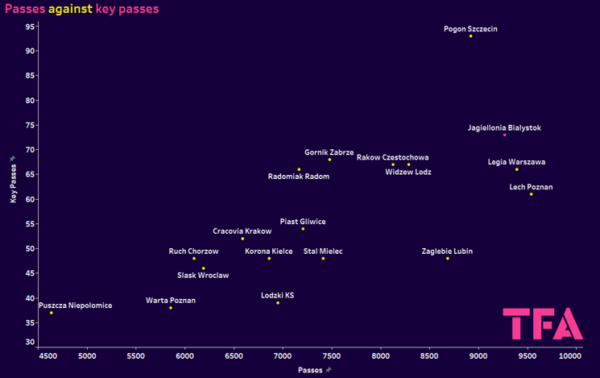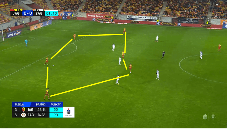 Z posiadaniem 55% na mecz Jagiellonia pod wodzą Adriana Siemieńca wykonuje 15, najwięcej w lidze, podań na 60 sekund, co dowodzi nie tyle ich dominacji, co tempa gry.