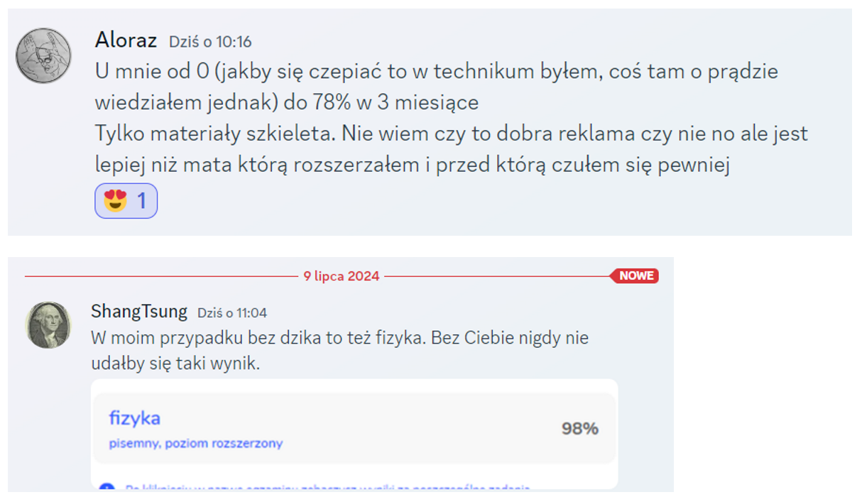 A i jeszcze jest taki gratis, że wlotka na kurs błyskawiczny. (Kurs błyskawiczny to duuuuużo zajęć w tydzień poprzedzający maturę. Wszystkie działy po kolei na przykładzie zadań pochodzących od obecnej ekipy CKE.)